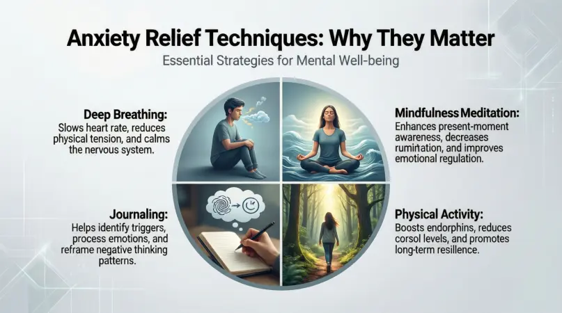 Anxiety relief techniques are important because anxiety does not disappear on its own. If ignored, it can affect sleep, focus, and physical health. Over time, anxiety may reduce confidence and joy in daily life.