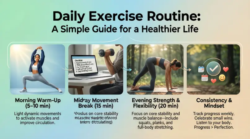 Most importantly, this article focuses on simplicity and sustainability. You do not need to be perfect or push yourself too hard. The goal is to move your body every day in a safe and enjoyable way. With the right mindset and guidance, a daily exercise routine can become a natural and rewarding part of your life.
